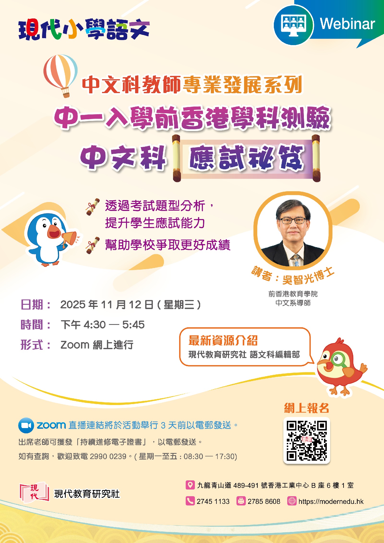 中一入學前香港學科測驗 中文科應試祕笈(ZOOM LIVE)