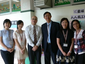| (左起)簡珮華主任、黃婉琪老師、曾錦添先生、陳志雄校長、方嘉茵老師以及周麗英主任。